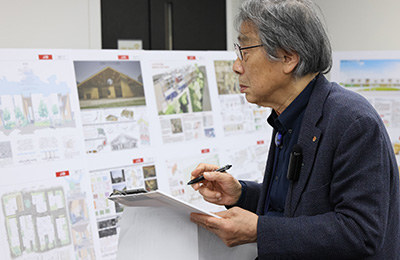 CLT DESIGN AWARD 2025―設計コンテスト―は「生き生きと暮らす、高齢者のための生活拠点」をテーマに開催され、71点の応募があった。今回の応募案の特徴は、それぞれの立地の条件を配慮しながら、元気な高齢者たちが共用する空間での日常の生活を楽しみ、さらに居住する者だけでなく、地域の人々とも繋がり、交流の機会が生まれる空間の創造に力が注がれていた。しかし、その一方で「生活拠点」を求めるという表現のためか、あるいは集合住宅における「個の生活」への認識が違うためか、各人が専用する個々の住宅の快適性や相互の繋がり方に配慮した提案は少なかった。そのため、審査の評価は、専用の住宅部分の評価より、共用の生活空間の評価を重視し、CLTの使い方の発想など評価基準に基づいて評価を行った。